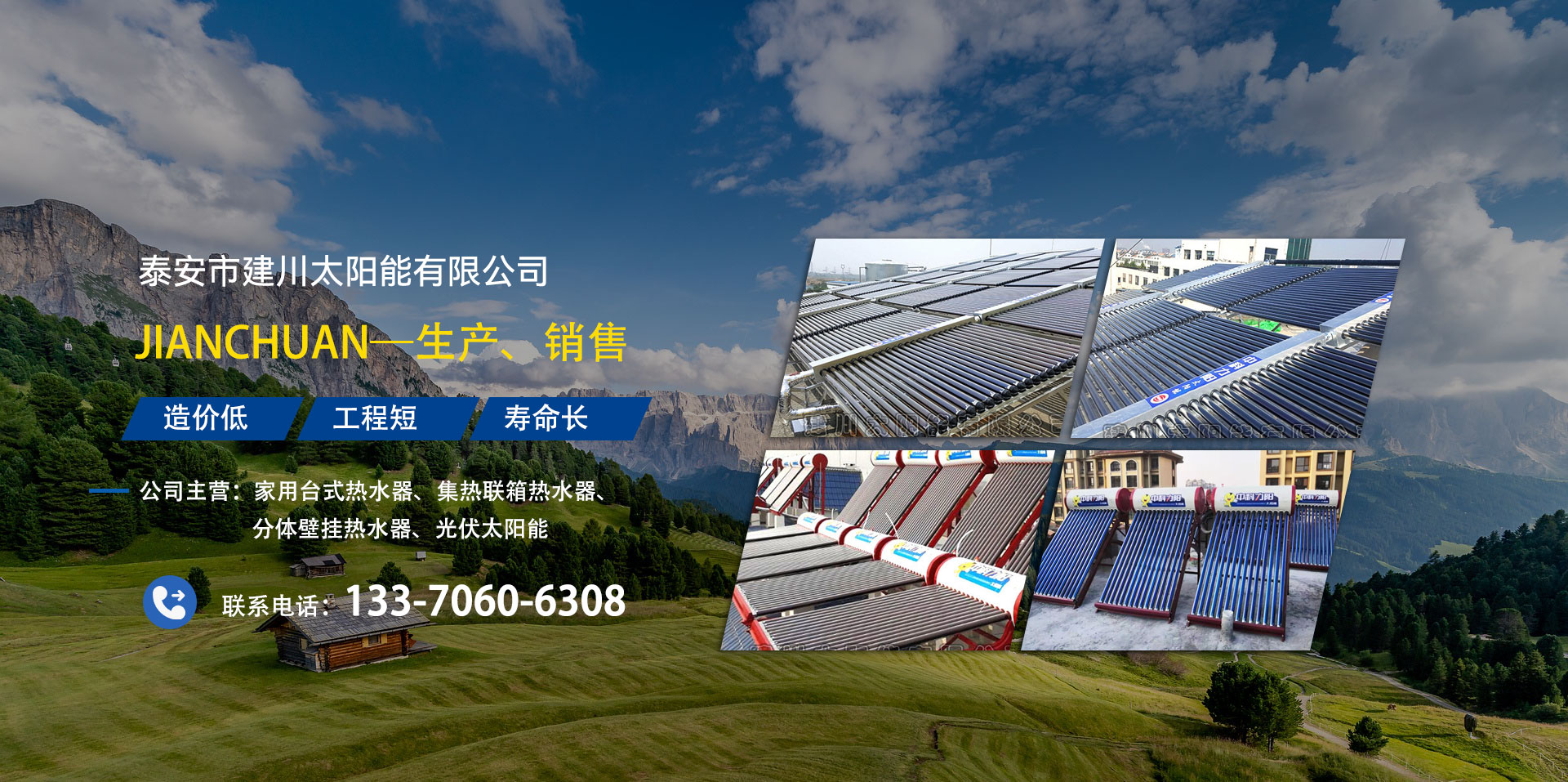 泰安市建川太陽能有限公司是一家從事太陽能系列產(chǎn)品及工程聯(lián)箱類產(chǎn)品的生產(chǎn).銷售為一體的企業(yè),企業(yè)設備性能優(yōu)良